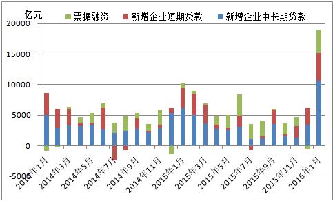 圖二:企業中長期貸款、短期貸款、票據融資增量走勢